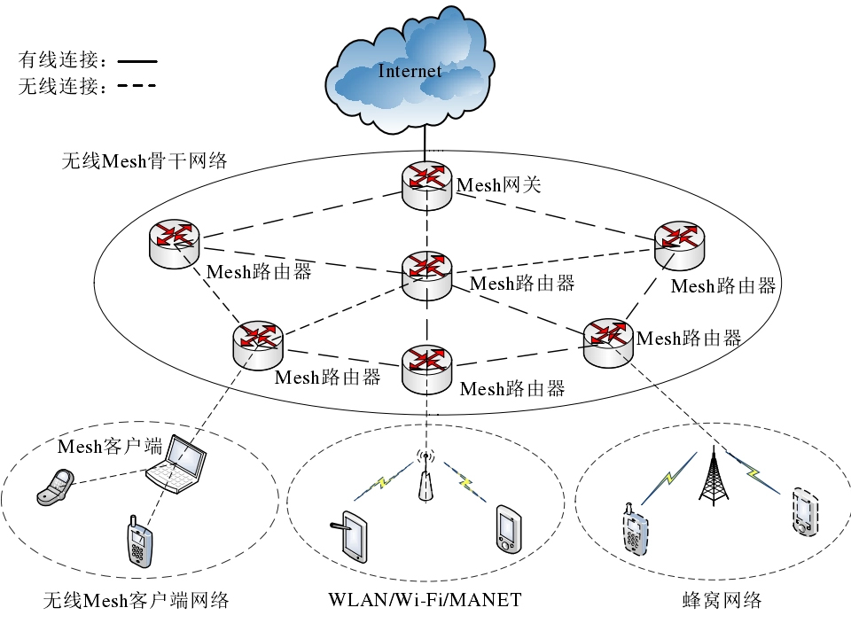 Mesh組網是一種無線網格網絡架構,它通過多個路由器相互連接,構建出一個動態(tài)且可擴展的網絡系統(tǒng)。在這個網絡中,每個設備都能扮演中繼路由器的角色,負責發(fā)送和接收信號,并自動組織、配置和維護整個網絡。